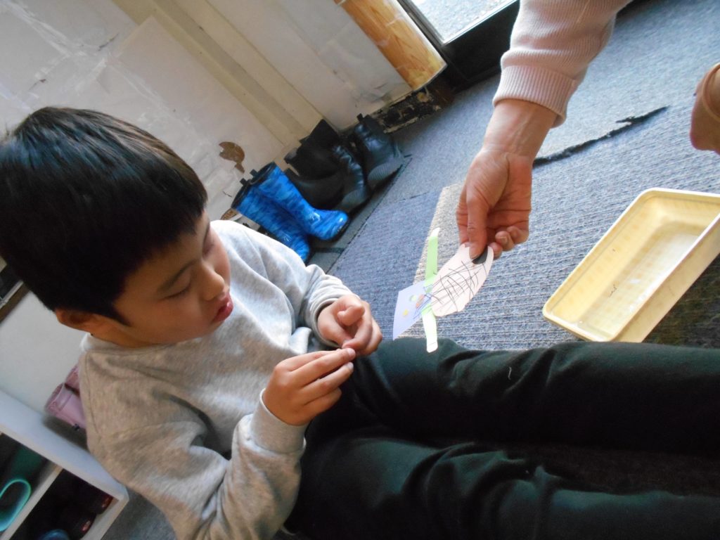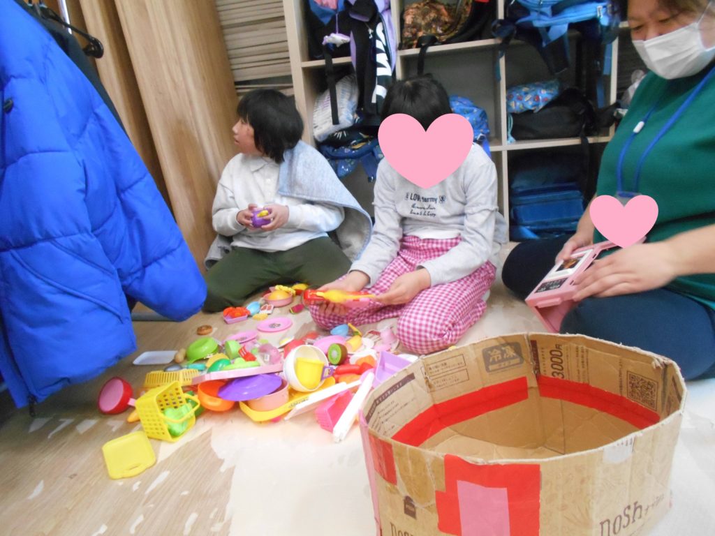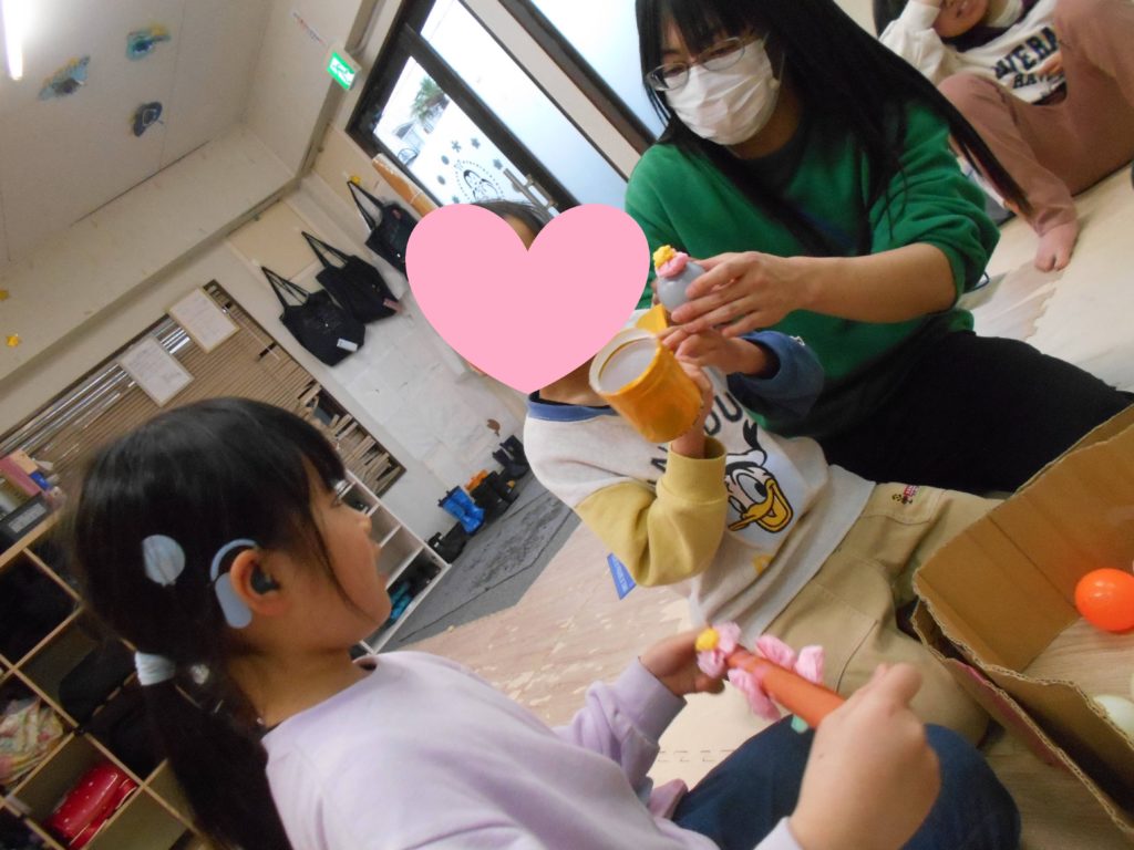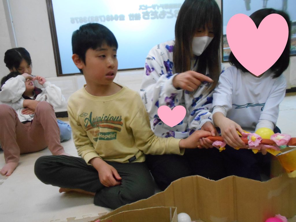 お友達に身に付けてもらう飾りを探して、持っていきました!