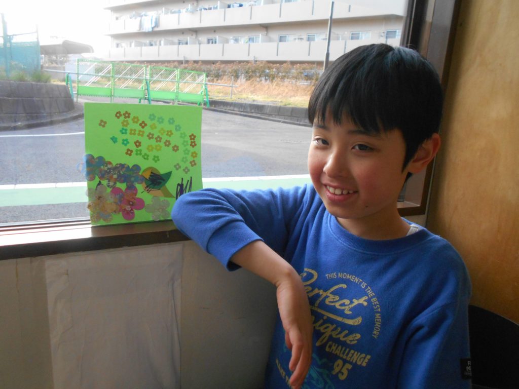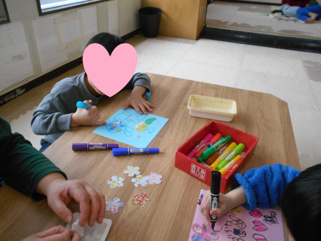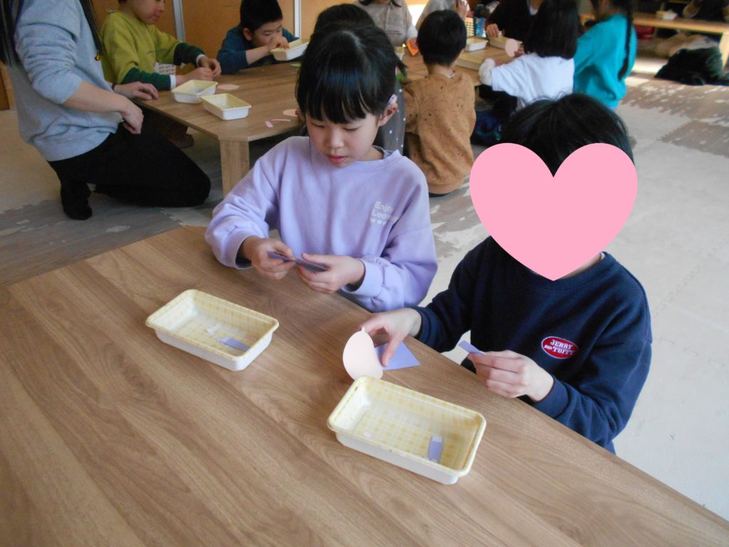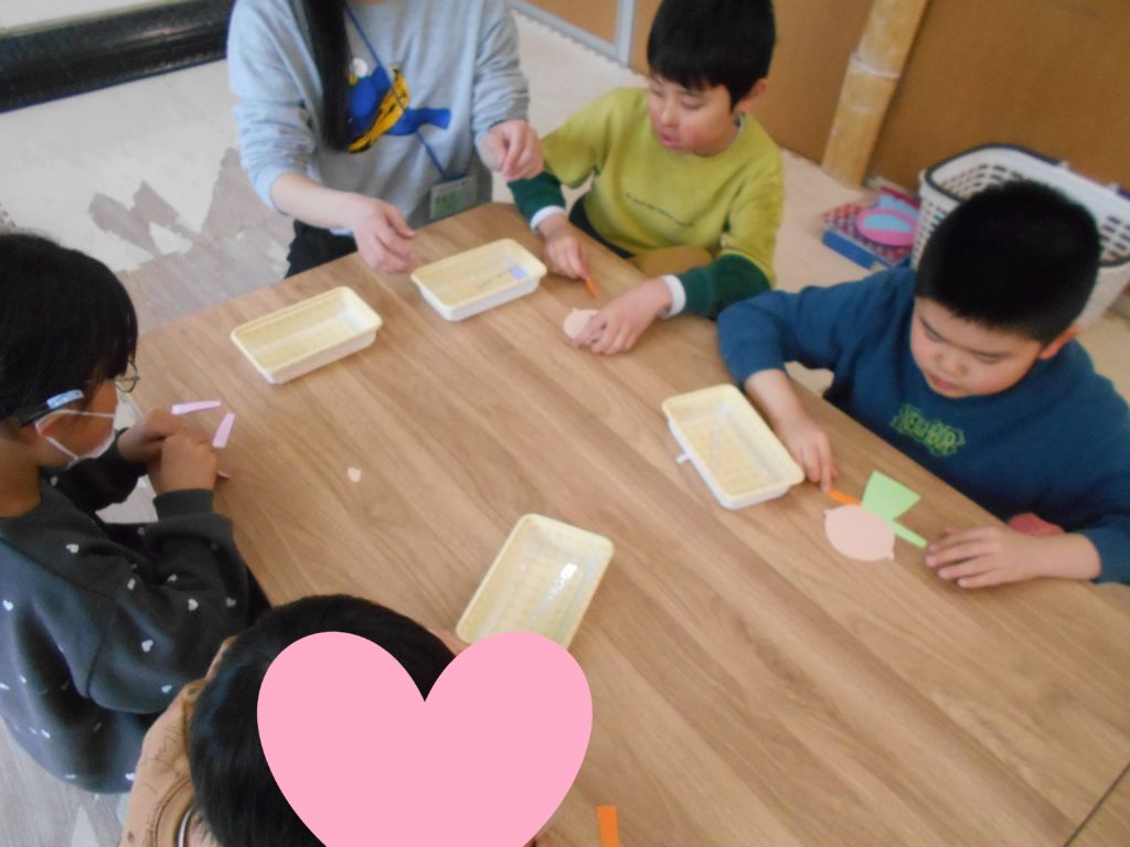 花びらとウグイスを作り、思い思いの飾りつけをしてもらいました!