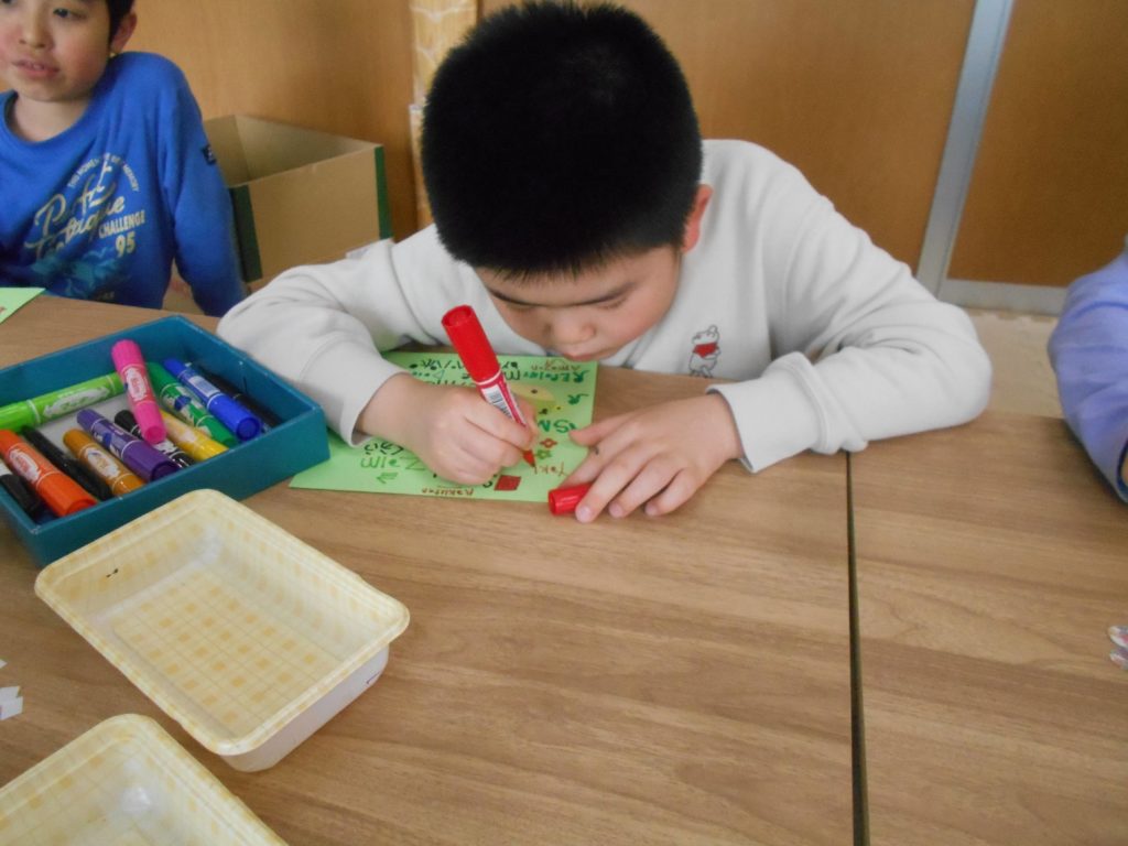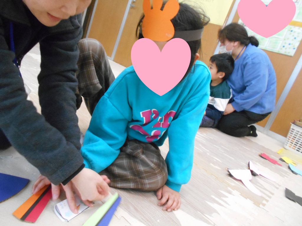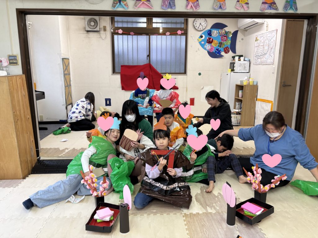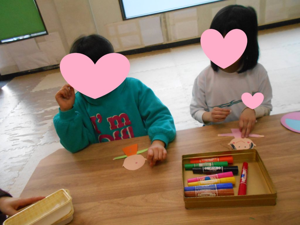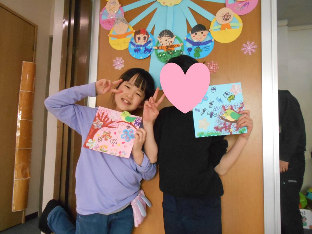 花びらとウグイスを作り、思い思いの飾りつけをしてもらいました!