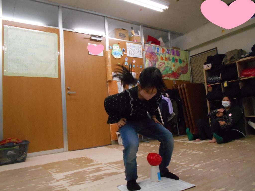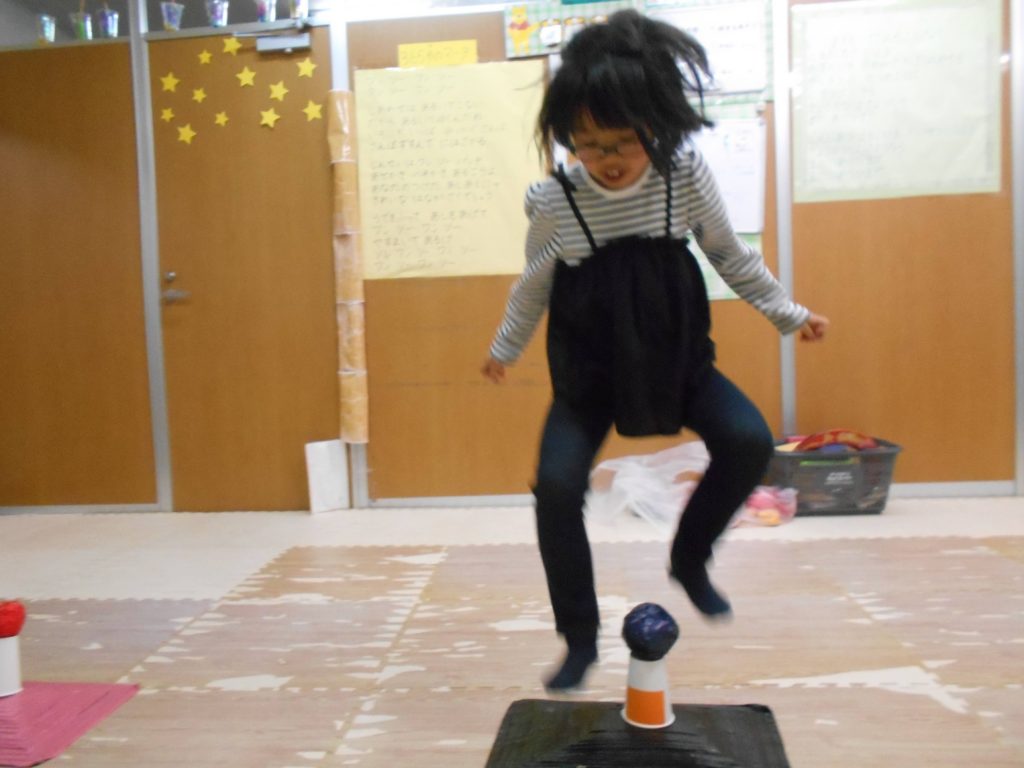 ボールを落とさないようにジャンプを行うゲームをしました
