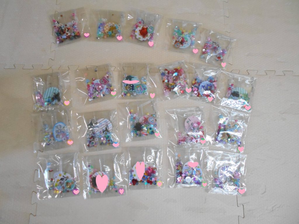 キラキラビーズやシールをケースに入れてとっても可愛いシャカシャカキーホルダーが出来上がり🎁