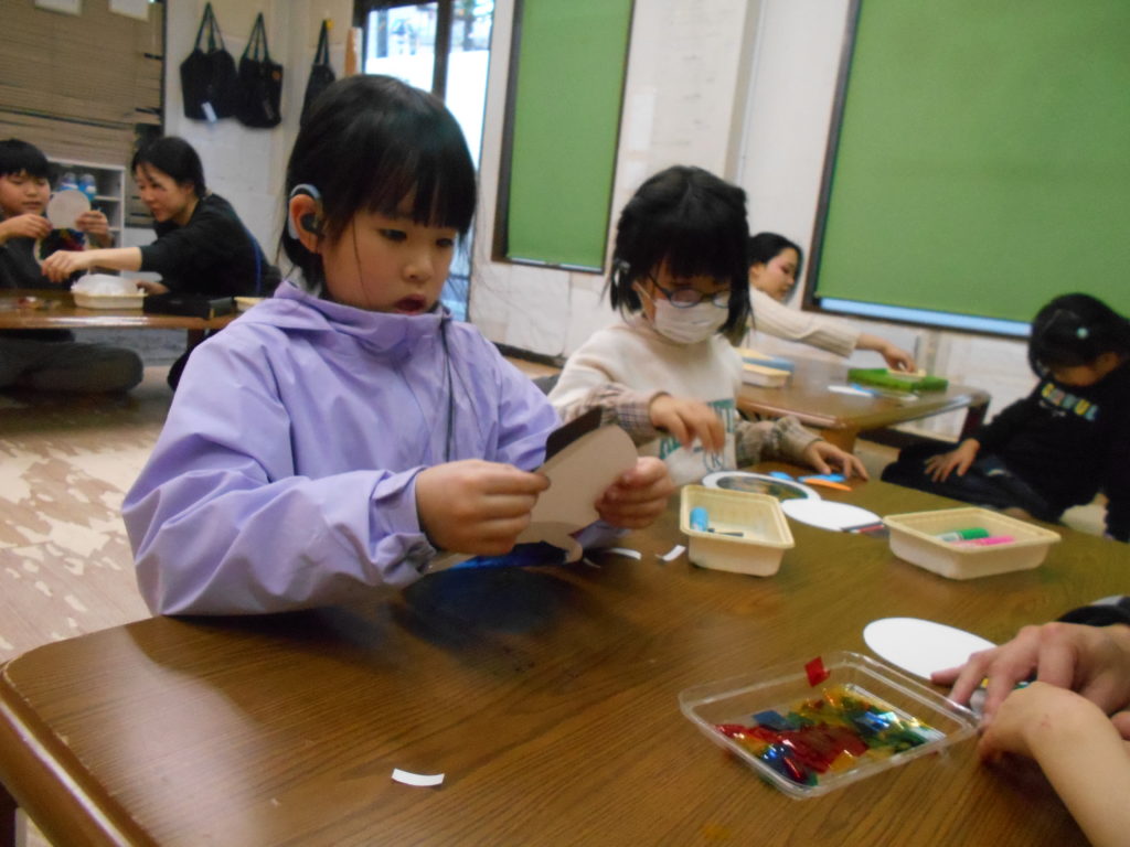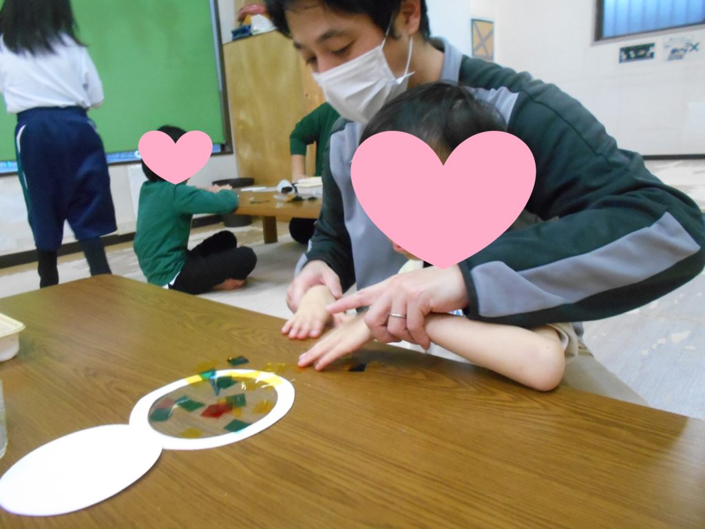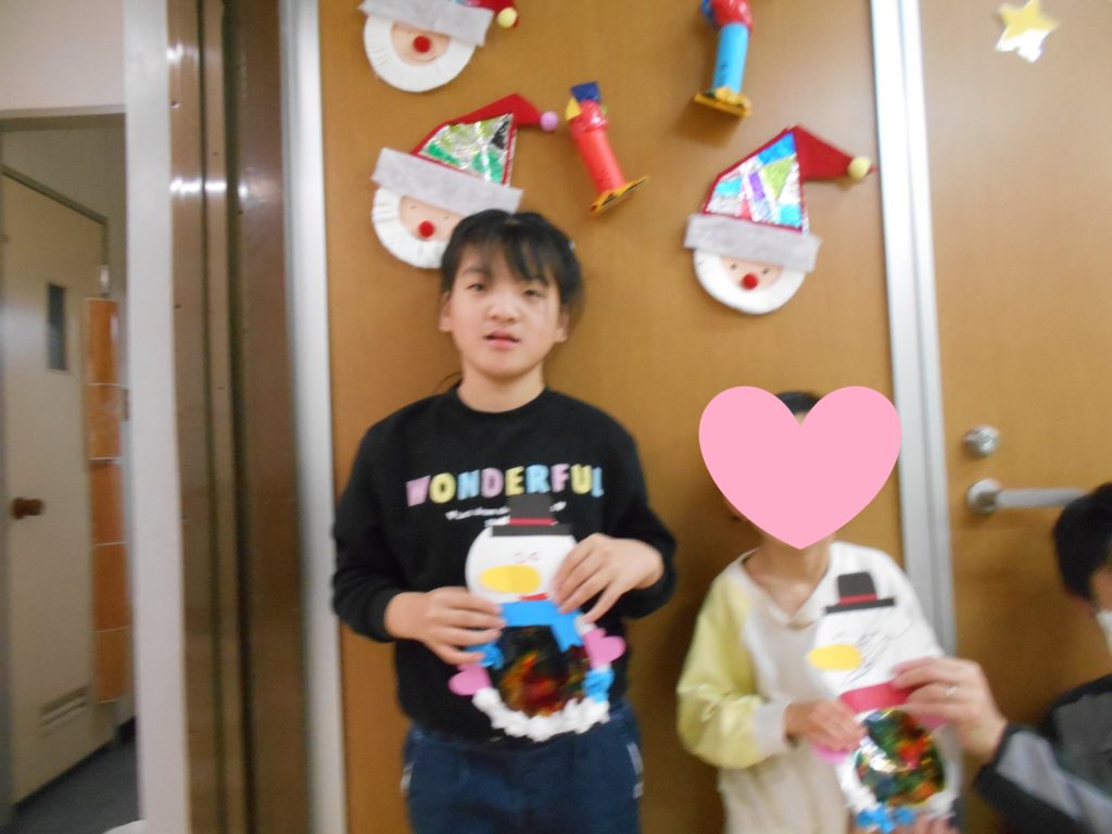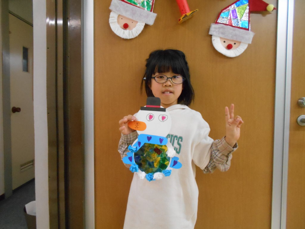 セロハンを貼ったら、雪だるまの飾りつけもしました!
