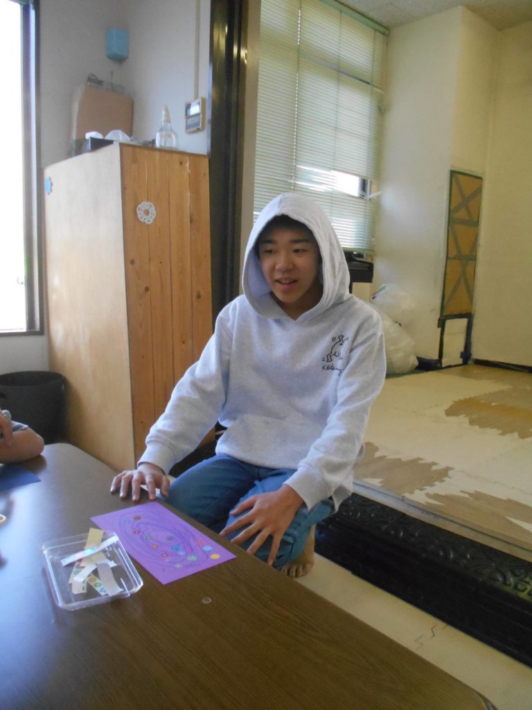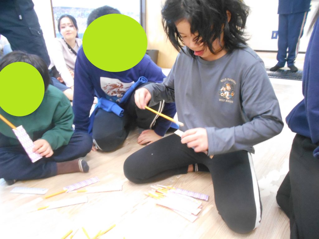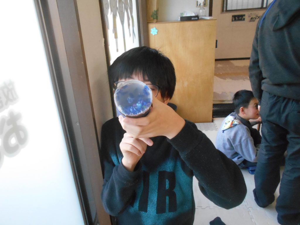 のぞいてみたり、ふってみたりして、作った万華鏡を楽しんでいました✨