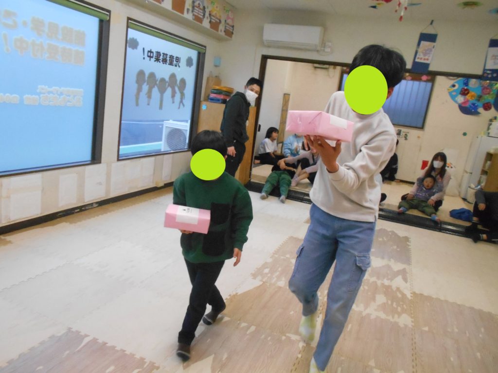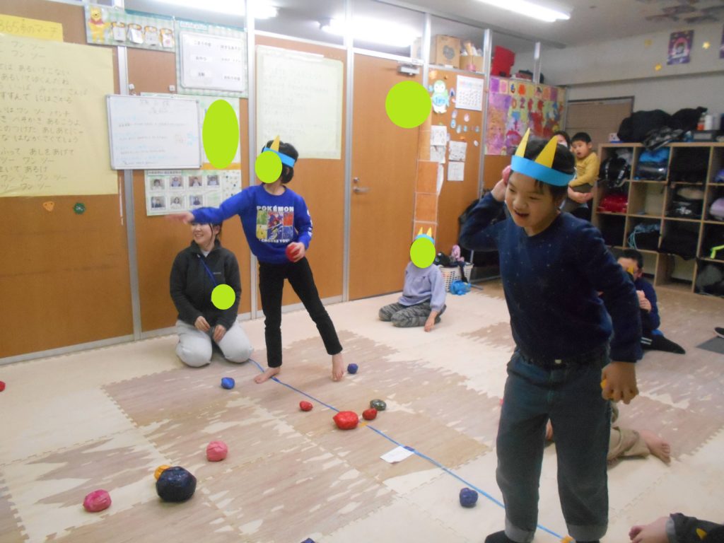 今年は、鬼退治のテーマではなく、赤鬼・青鬼のチームに分かれて競い合いのゲームを行いました💪