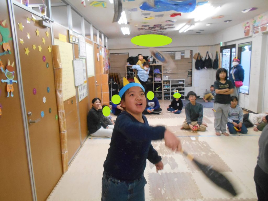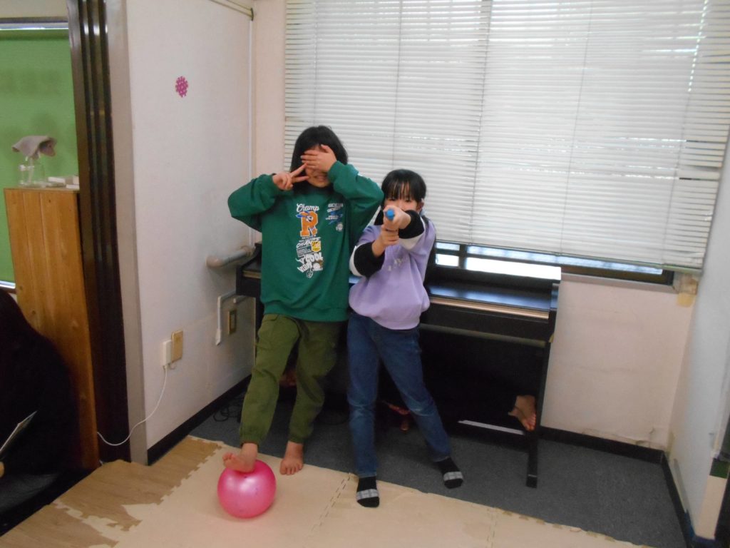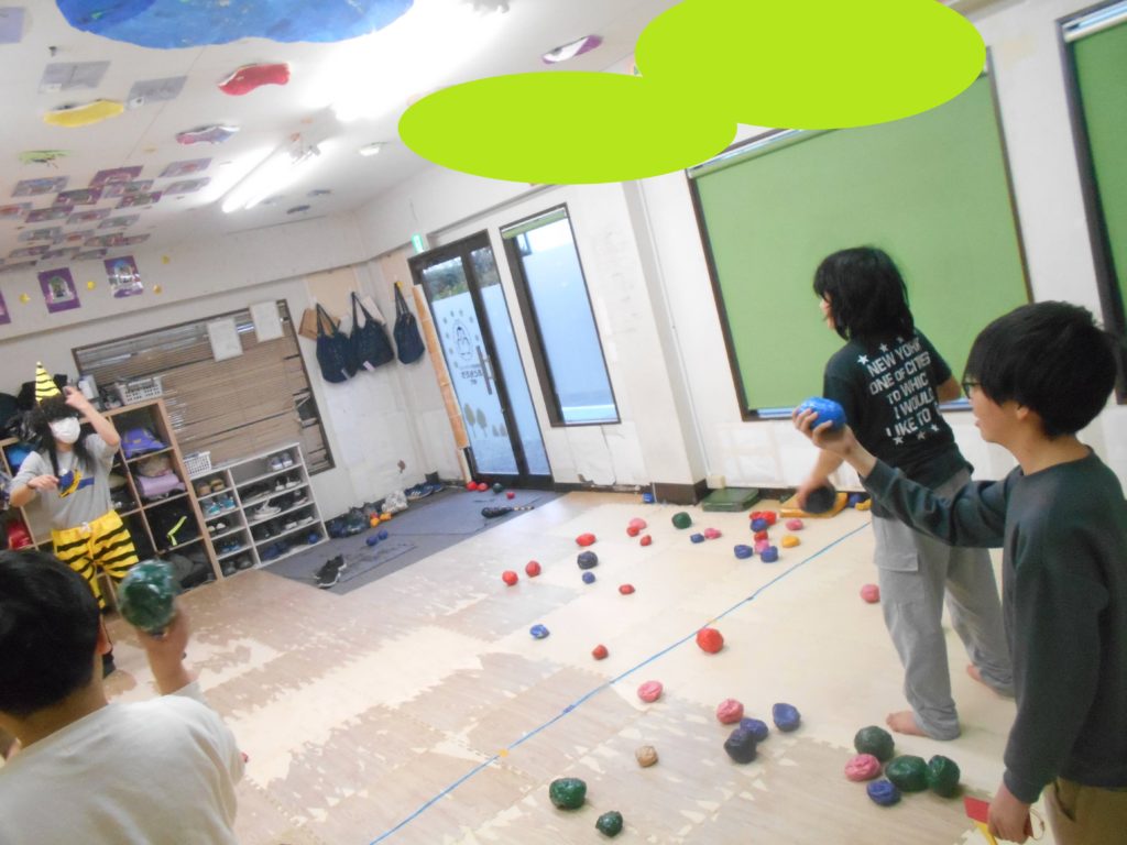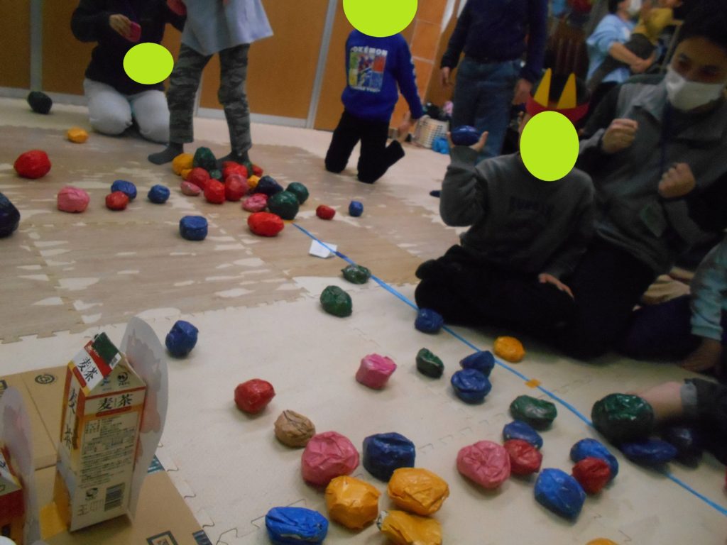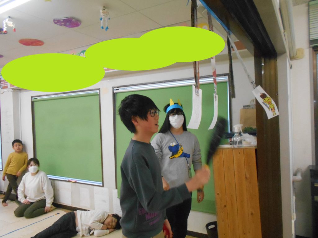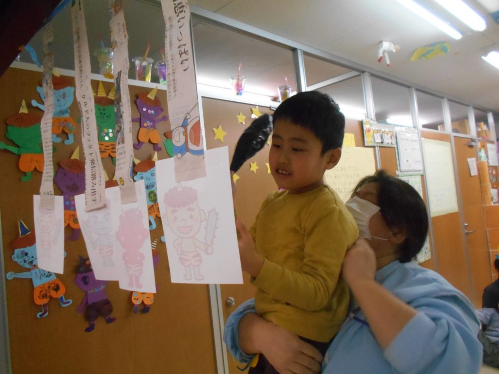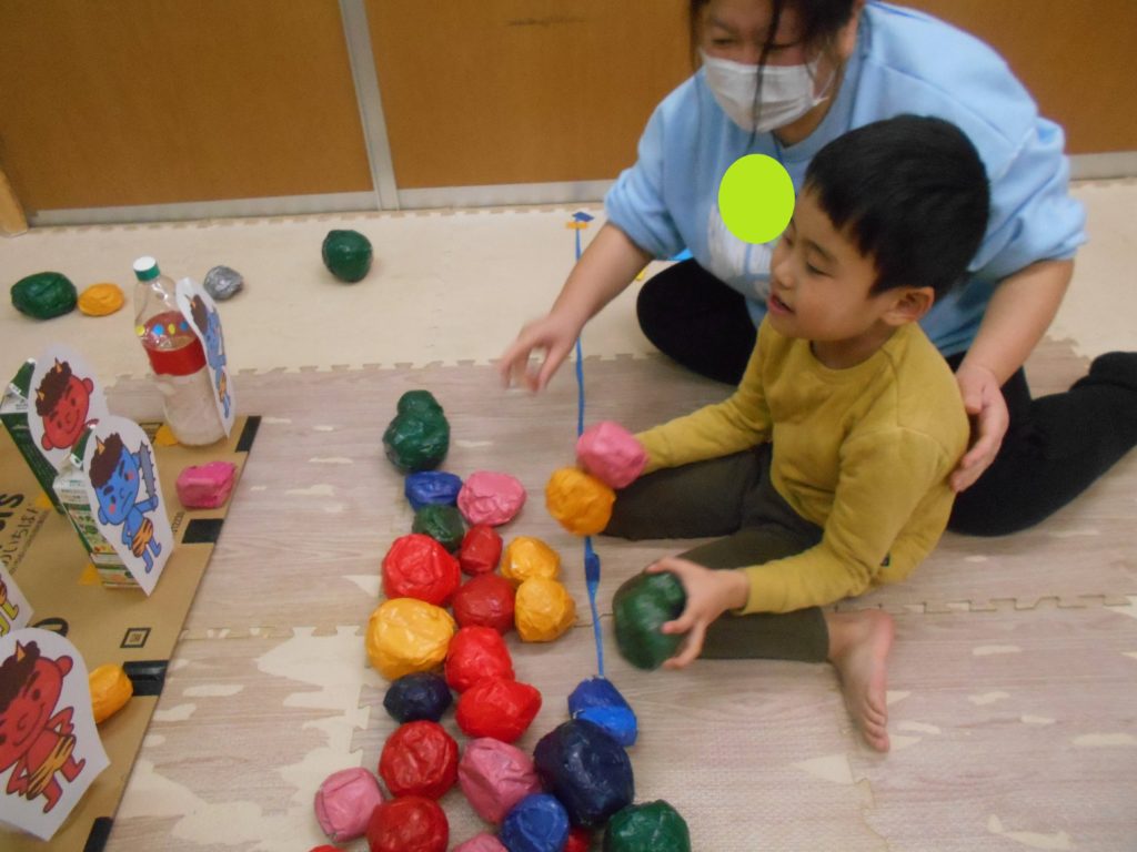 豆ボールを投げてミニミニ鬼を倒しました👹